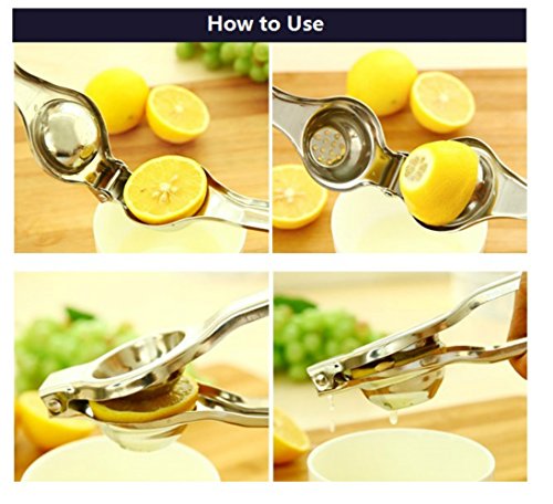 -. Feature : Good Quality Materials:The durable lemon press is made of sturdy zinc alloy that is universally recognized as the kitchen material. The solid lemon press is made of stainless metal will not bend, rust or break due to excessive usage / High Efficency: The Squeeze Head - adopts erose design, let juice seep completely, without wasting. / Easy To Use: No matter if you choose to squeeze lemons, limes or blood oranges, this Lemon Squeezer will make your job so easy / More Juice and Less Strength Needed: with a Long shaft(5.1 inches) can provide better leverage and protection.And it is fully polished.It's quite safe for people to use it without any worries / Easy To Clean, When done, either use a light detergent to wash and set to dry. Clean-up's a breeze: either use a light detergent to hand wash and air dry, or just simply throw it in the dishwasher.