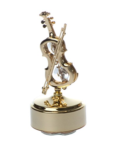 - Feature : Made with 8 genuine MATASHI crystals / Gleaming gold-plated surface with soft felt finish on bottom / To play music wind the base and watch the violin spin slowly to soft music / One piece, 4.5" high x 2.0" across at base / Comes in decorative gift box.( Box measures 4'' x 2.5'')