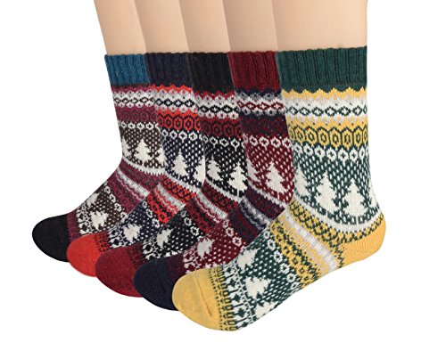 -. Title : kunshang 5 Pairs Womens Vintage Style Winter Warm Thick Knit Wool Cozy Crew Socks