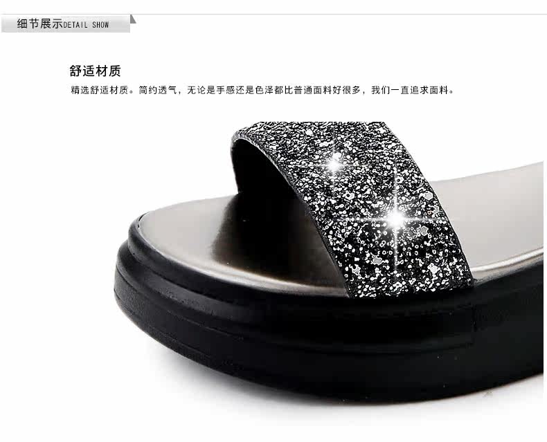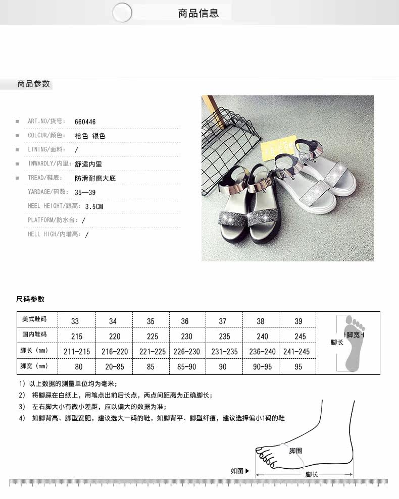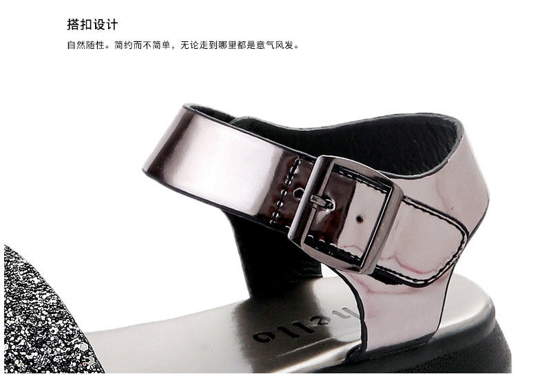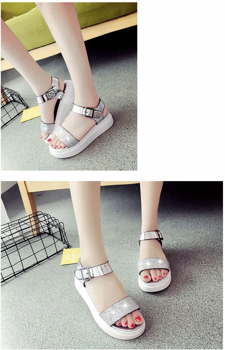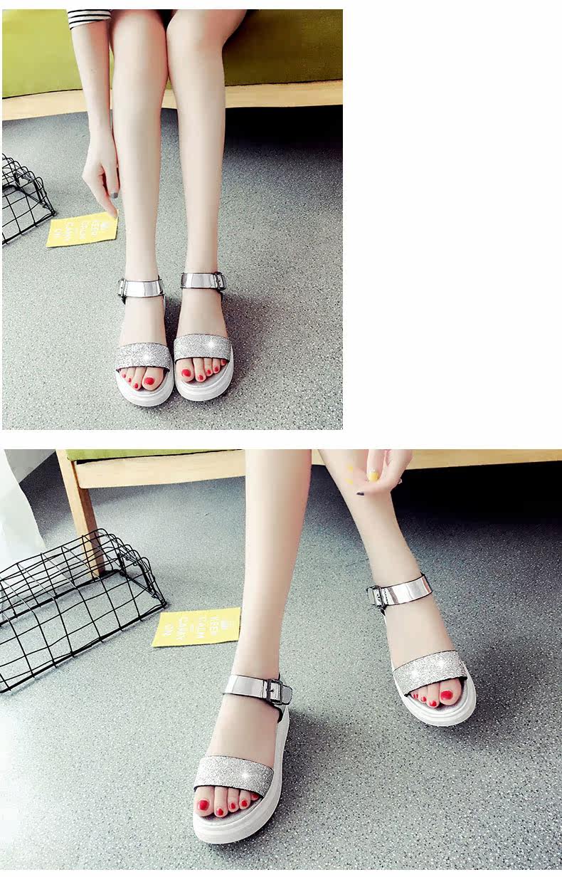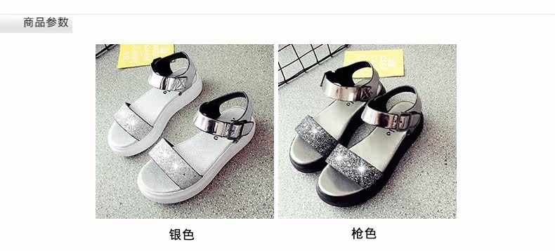 韩版亮片松糕厚底学生女鞋子潮夏季新款平底亮片露趾扣带凉鞋