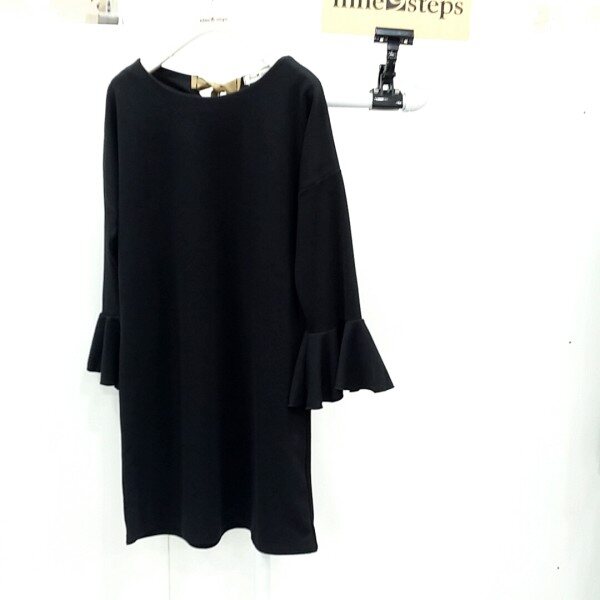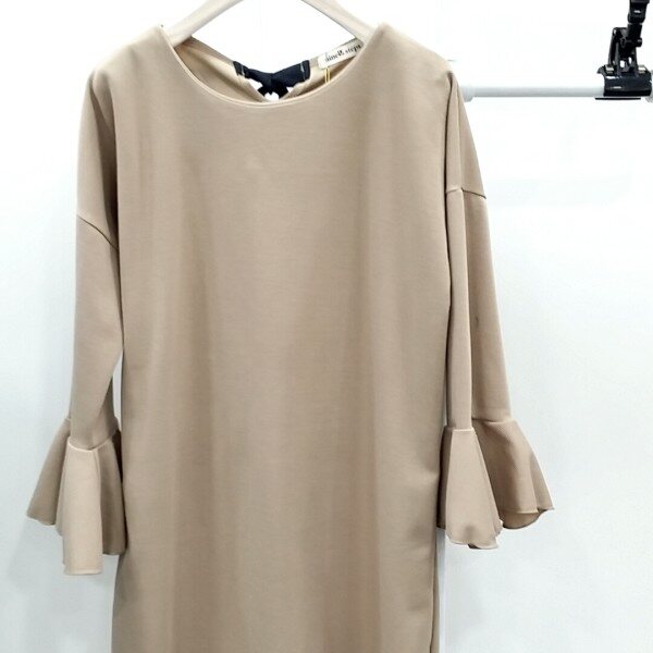 무릎기장이구요~소매에프릴이되어있어서 귀엽고여성스러운원피스입니다일자핏이리서 슬림하게보인답니다~