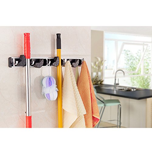 -. Title : PIXNOR Aluminum Wall Mounted Mop and Broom Rack Holder 4 Position 5 Hooks (Black)