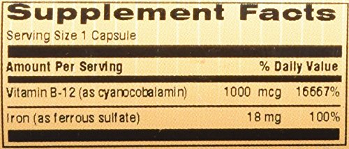 -. Feature : Generous 1000 mcg of energizing B-12 / Fosters healthy blood cells with 18 mg of iron / Just one capsule daily