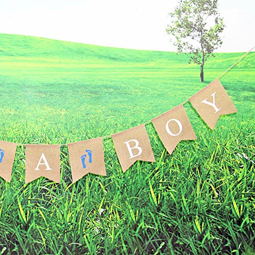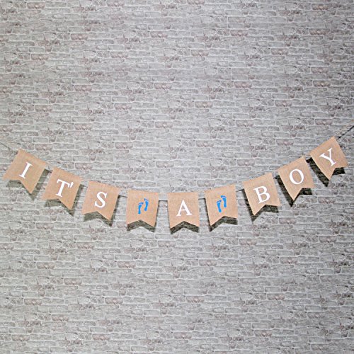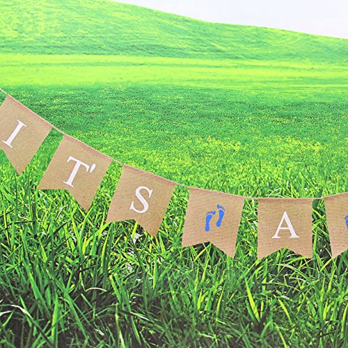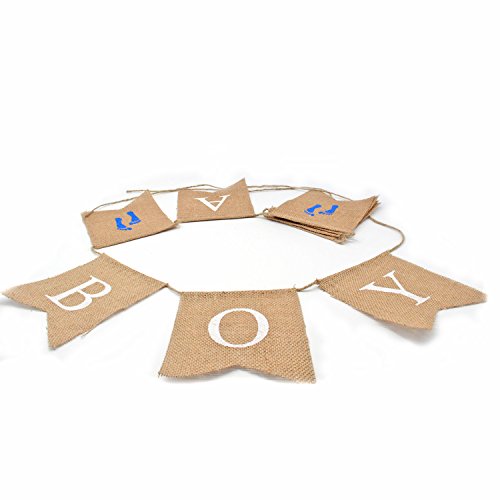 -. Title : Junxia "It's a boy" Jute Bunting Burlap Banner Gender Reveal Flag Baby Shower Decor Flag Newborn Baby Boy Celebration