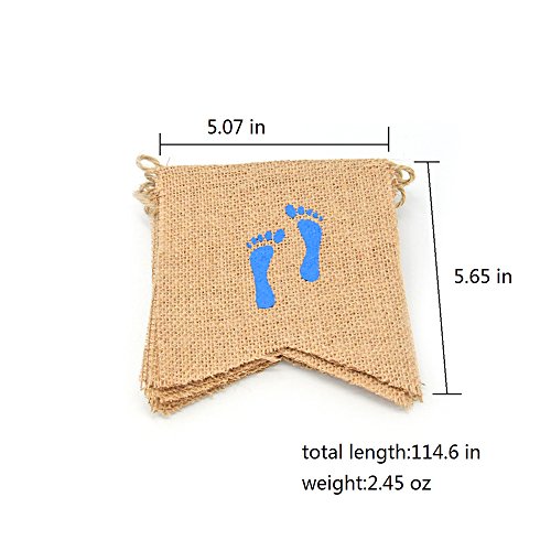 -. Feature : Color:White,blue,brown / Material: Burlap,Pure handmade / Total length: 276 cm long / Each flag:(L*H)13*14.5 cm / Perfect for Baby shower,baby boy birth decoration.