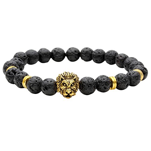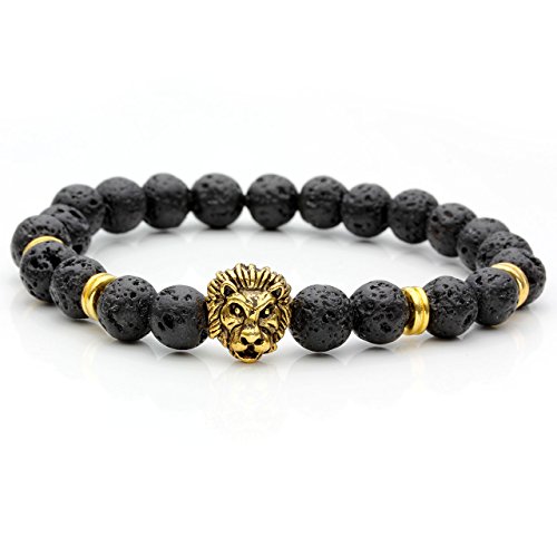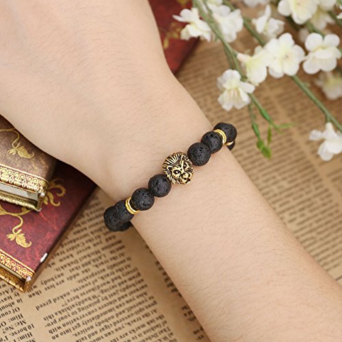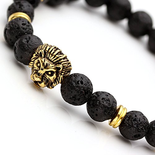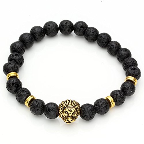 - Title : JOVIVI® 8mm Black Lava Rock Stone Golden Skull/Buddha/Lion Head Charm Buddhist Prayer Reiki Mens Energy Bracelet (Lion Head)