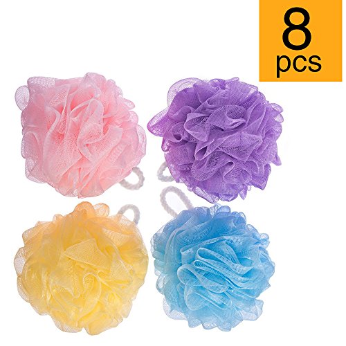 FU GLOBAL Bath Sponge Mesh Pouf 5 Inch Mesh Bath and Shower Sponge Bath Lily Pack of 8