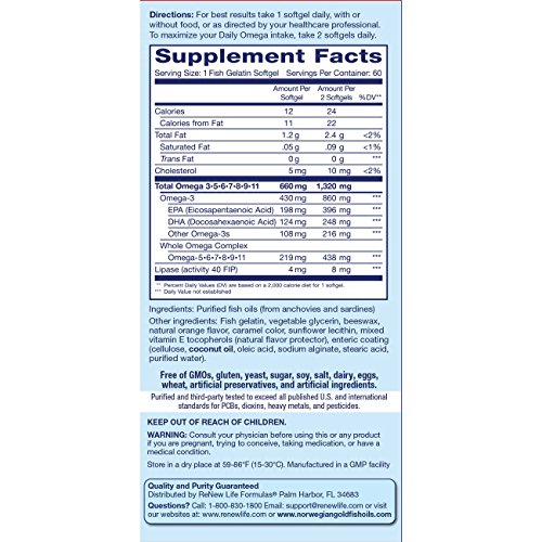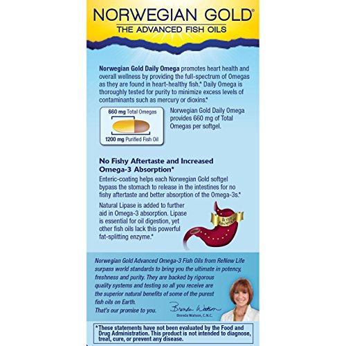 Norwegian Gold Fish Oil, Daily Omega by Renew Life, 60 Softgel