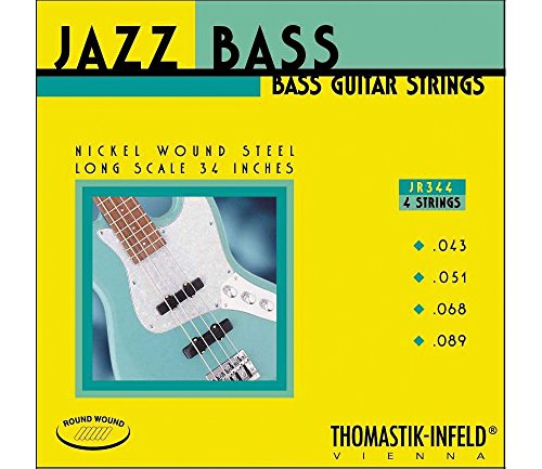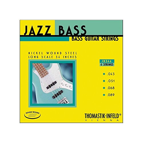 Studio : Thomastik Publisher : Thomastik Product Description Jazz Series E-Bass Strings from Thomastik-Infeld are strings with extended durability and high output. A highly flexible steel core gives this bass string a balanced feeling and a special character. The overall sound can be described as very close to the double bass. Nickel roundwound with a round core. 34" scale.Gauges: .043 - .051 - .068 - .089. 0