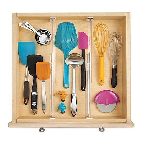 -. Brand : InterDesign -. Color : Multicolor -. Feature : Keep your utensils neat and organized with the Interdesign® Linus Acrylic Adjustable Drawer Divider / Set of 2 Product adjusts to custom fit drawer / Easy to lock in place with a lever Foam pads on each end to keep from scratching drawer / Plastic Wipe clean Imported / Each divider measures 13.25" L x 1.25" W x 2.5" H; expands from 13.25" to 20.75" if desired -. Label : InterDesign -. Manufacturer : InterDesign -. ProductGroup : Kitchen -. ProductTypeName : KITCHEN -. Publisher : InterDesign -. Studio : InterDesign -. Title : Linus Acrylic Adjustable Drawer Divider (Set of 2) by InterDesign®