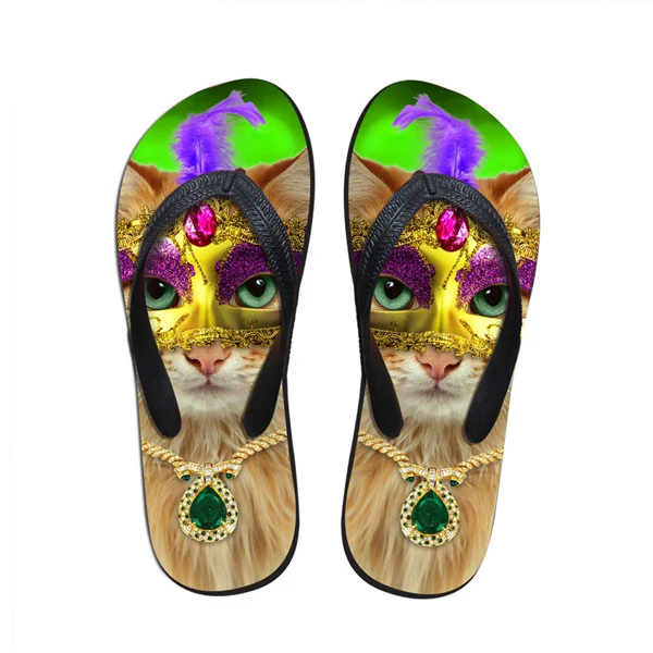 Pattern:animal cat printed slippers beach women brand