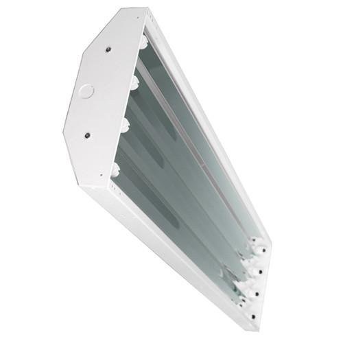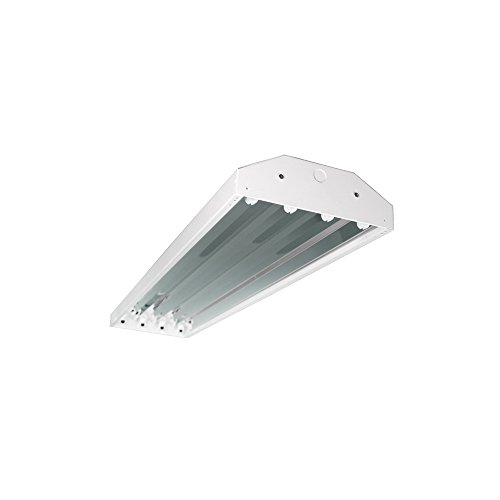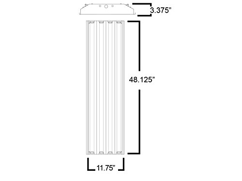 The GoodBulb 4 Lamp T5 High Bay fixture is great for many uses from the simple overhead garage light to more complex locations such as an auditorium or gymnasium. From residential to commercial, this fixture is bright enough to get the job done. It can be placed as low in rooms with a ceiling as low as ten feet, or as high as 45 feet. Dimensions of this fixture are 48.125" long by 11.75" wide, with a height of 3.375" once installed. This fixture operates on four lamps and comes already equipped with a ballast, making this even more affordable of a purchase. Installation of the GoodBulb 4 Lamp T5 High Bay fixture is simple enough for one person to do, with easy access to wiring compartment and the ballast. The access plate provides access to electrical wiring without the need to open the fixture, and there are knock outs for easy electrical wiring and assembly. This fixture can be accessorized with a wireguard option and a chain, V-Clip, or wire cable hanging option. The pendant mount kit provides a top J-box to simplify HID retrofit installations. It can be used with a hook or rigid conduit and fasteners. The High Bay Fluorescent provides great energy saving compared to the regular HID systems with an average saving of almost 50% annually. *Bulbs sold seperatelyFeature