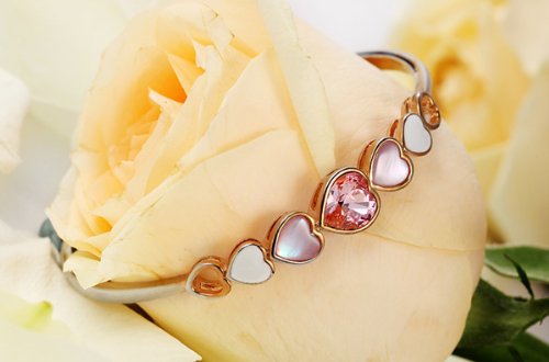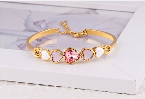 -. Title : Fappac 18k Gold Plated Crystals Multi Heart Bangle Bracelet Enriched with Swarovski Crystals