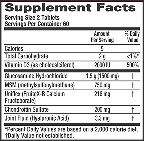 Move Free Advanced + MSM and Vitamin D3 is a Glucosamine Chondroitin joint supplement that contains premium ingredients, including glucosamine, chondroitin, uniflex (calcium fructobrate), hyaluronic acid, Methylsulfonylmethane (MSM) and Vitamin D3 to promote the health of your joints. Glucosamine is key for the formation of cartilage, an essential building block of your joints to support your mobility and flexibility.* Chondroitin is a building block of cartilage that supports joint strength by helping to resist compression in the joint. Chondroitin attracts fluid to your joints to support cushioning and lubrication.* Uniflex (calcium fructobrate) is a clinically test mineral complex that supports joint comfort in as little as 2 weeks.** Hyaluronic Acid is the same molecule found in healthy joint fluid that supports joint lubrication and smooth movement. As we get older, our levels of HA tend to decrease.* MSM is important in the formulation of collagen and Vitamin D3 helps maintain healthy levels of Calcium and Magnesium, important minerals that support strong bones.* *These statements have not been evaluated by the Food and Drug Administration. This product is not intended to diagnose, treat, cure or prevent any disease. **J Aging Res Clin Pract 2014; 3(4):223-228Feature