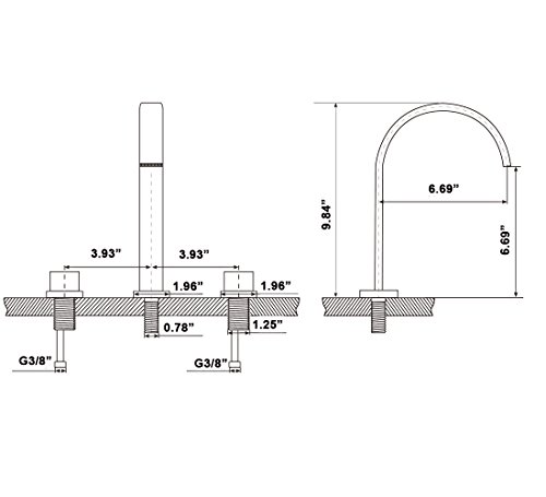 Including mounting hardware, Two G3/8” Connecting Hoses, Hot & Cold Water Connect Hoses. 2 handle design for precise water volume Drip Free Ceramic Disc Cartridge