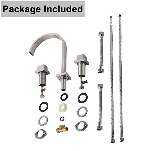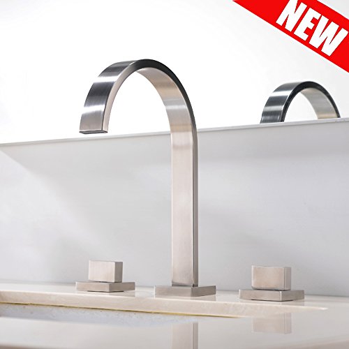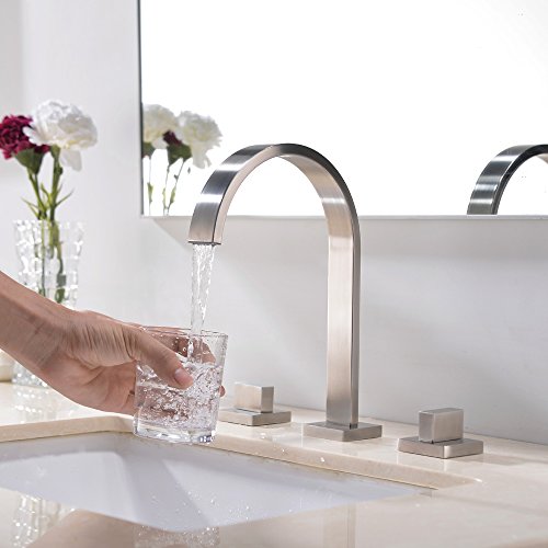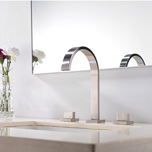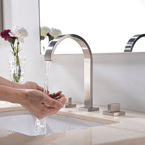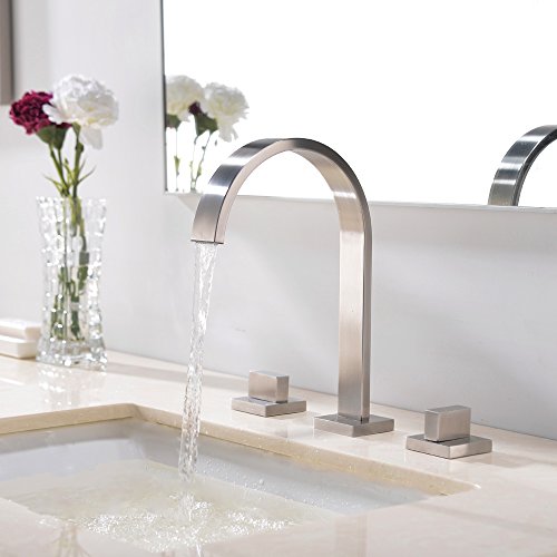VAPSINT Modern Three Holes Two Handle Brushed Nickel Waterfall Widespread Bathroom Faucet, Basin Vanity Sink Faucets