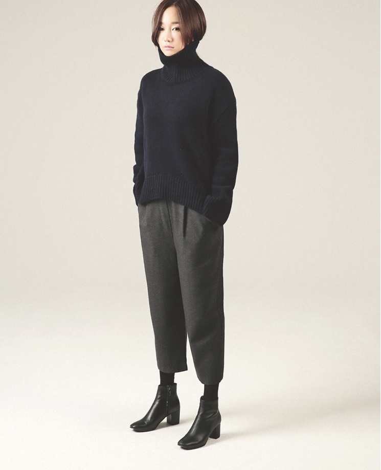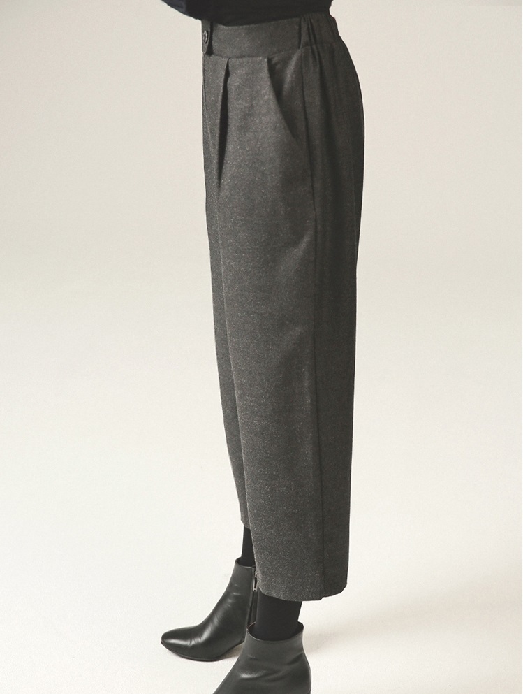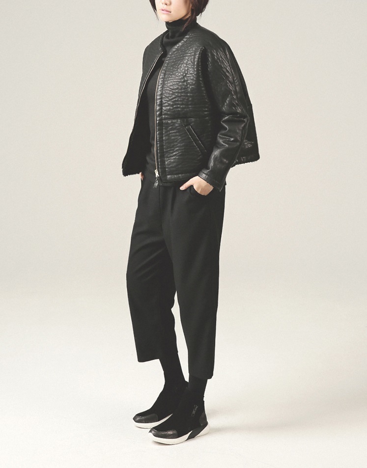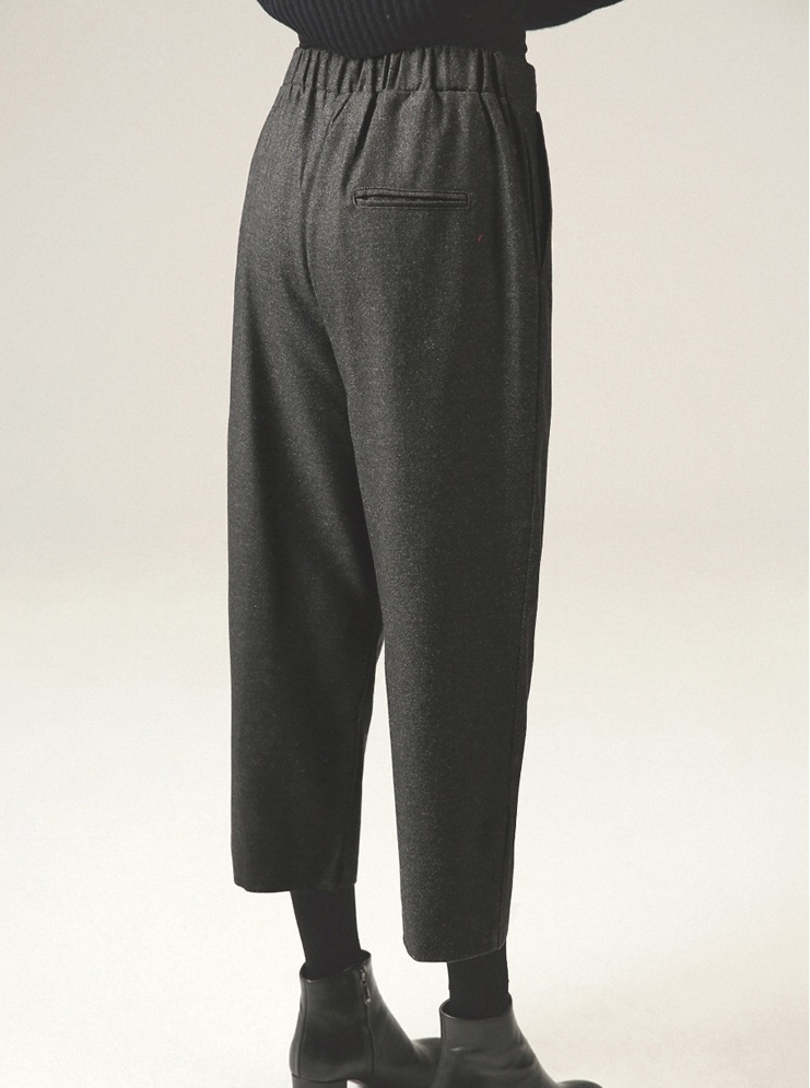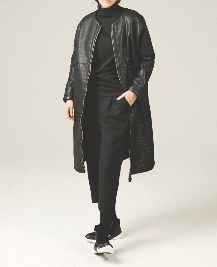 テーパードシルエットでシックでモードな印象に。