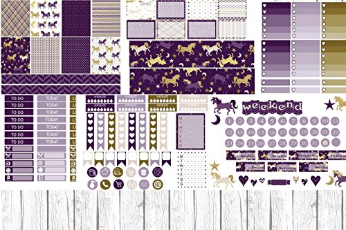 -. Title : Magical Unicorn, planner sticker weekly kit. 6 sheets on matte removable sticker paper. Choose from size of Erin Condren or Happy Planner. Kiss cut, just peel and stick.