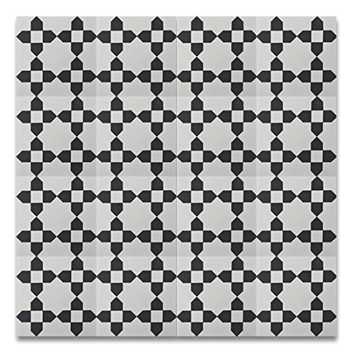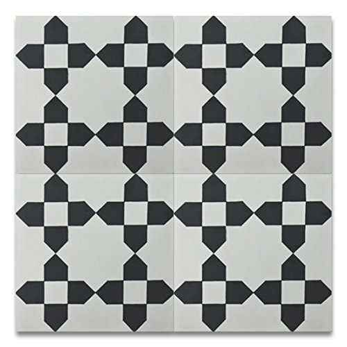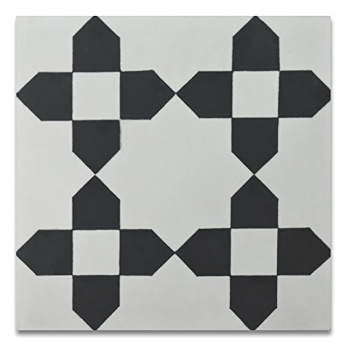 Moroccan Mosaic & Tile House CTP62-01 MartilCTP62-01 Martil 8’’x8’’ Handmade Cement Tile in Black and White(Pack of 12), White Black Blue