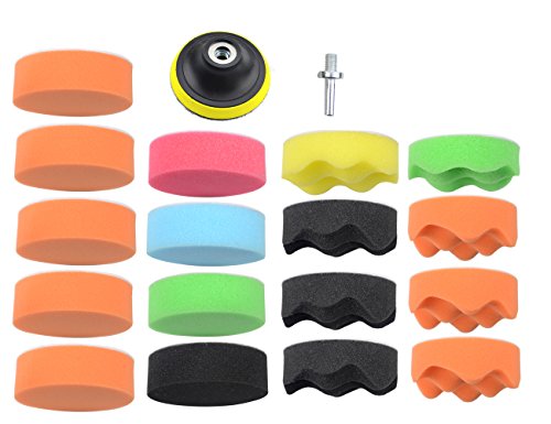 WGCD 19 PCS 80mm/3" Sponge Polishing Waxing Buffing Pads Kit Set with Drill Adapter for Compound Auto Car Polisher