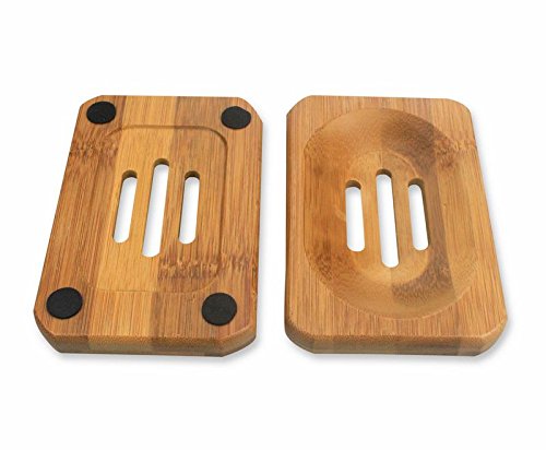 Labara Natural Bamboo Wood Soap Dish Storage Holder Bath Shower Plate Bathroom (4pcs)