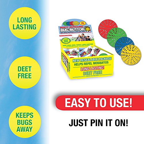 Insect Repelling Bug Buttons are infused with a special blend of natural insect-repelling oils. Just pin the Bug Button onto your clothes, hat, for long-lasting, non-greasy, waterproof relief from bugs!