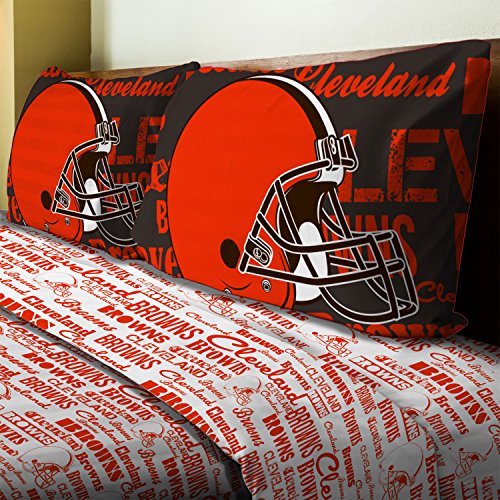 [Product Information]- NFL Cleveland Browns Anthem full bed size flat sheet, fitted sheet, and two standard pillowcases.