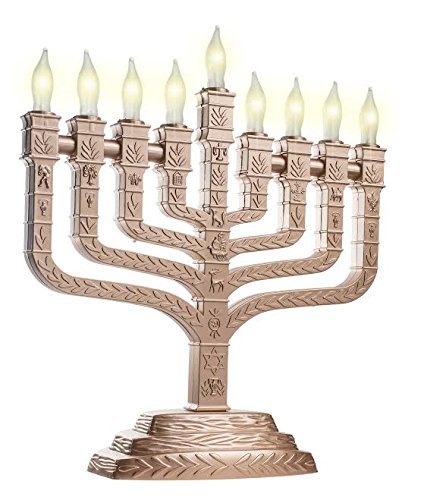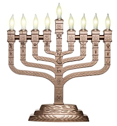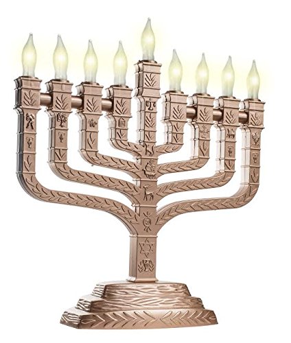 Knesset Style Electric Menorah Matte Gold with the Symbols of the Twelve Tribes - Frosted Bulbs