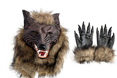 -. Title : Latex Wolf Head Mask Halloween Costumes Werewolf Mask with Werewolf Hands