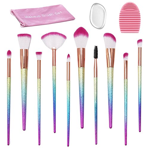 Makeup Brush Set: 10pcs makeup brushes + 1pcs lash brush + 1pcs silicone makeup sponge