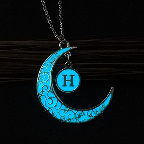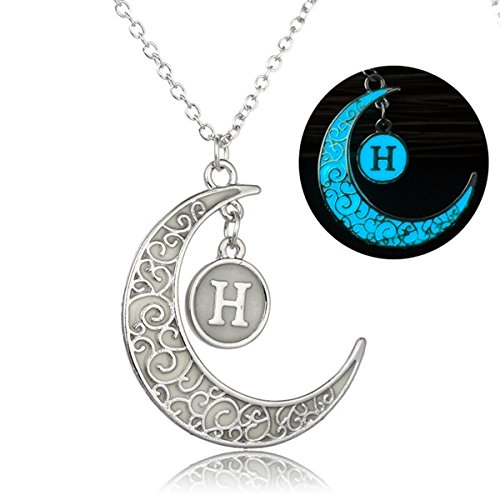 -. Title : Linsh Initial Necklace Glow in Dark Hollow Out Carved Moon H Letter Pendant Necklace Color: Silver
