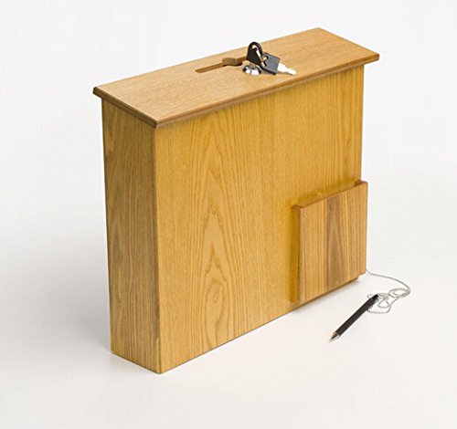 This suggestion box features a durable hinged locking door, with a key lock and 2 keys included. Insert comment or note cards in the built-in comment card pocket can holds input cards or donation envelopes and allow guests to share their thoughts.
