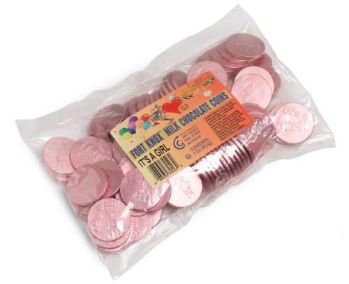-. Title : Pink "It's a Girl" Milk Chocolate Coins, 1 lb. bag, 91 coins