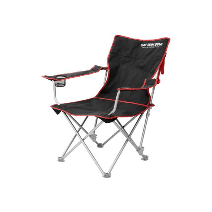 CAPTAIN STAG 캡틴 스태그 아웃도어 체어 줄 리클라이닝 라운지 체어 M-3864 드링크 홀더 부착 블랙