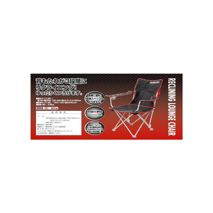 원본상품명: キャプテンスタッグ アウトドアチェア ジュル リクライニングラウンジチェア M-3864 ドリンクホルダ付き ブラック