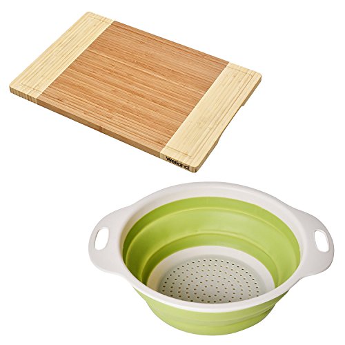 KITCHEN SET- Includes 1 pc Collapsible Kitchen Colander / Strainer and 1 pc Extra Large Bamboo Cutting Board
