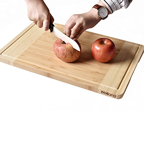 EXTRA LARGE CUTTING BOARD-Provids space for heavy duty vegetable chopping, slicing fruits, and cutting meat. High quality bamboo resists knife scaring and warping