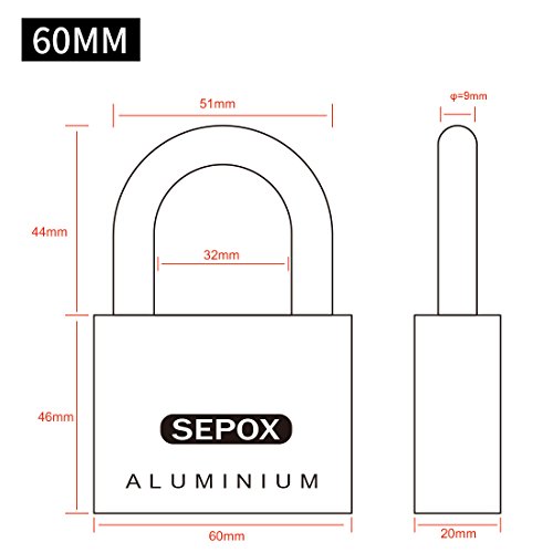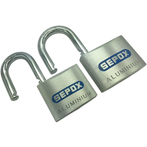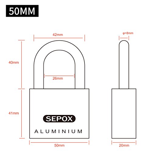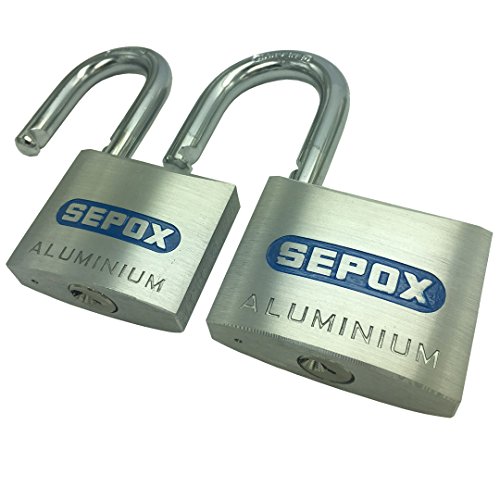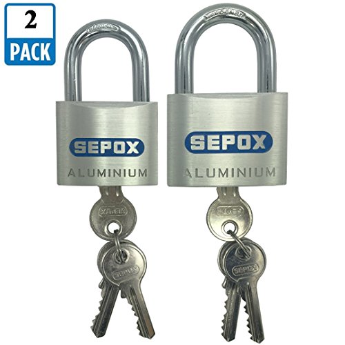 SEPOX 2 Pack Solid Anti-rust Steel Padlock, 2” Wide & 2 9/25” Wide Aluminum Padlock with 3 Master Keys