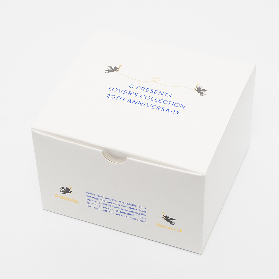 包裝採用心形盒子,上面標有「G PRESENTS LOVER'S COLLECTION 20TH ANNIVERSARY(G PRESENTS LOVER'S 系列 20 週年)」字樣,以及天使與魔鬼的圖像。包裝底色為白色,圖畫則以海軍藍和金色繪製,配合手錶顏色。