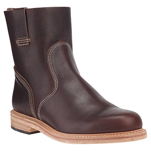 Product DescriptionCasual boot features a contrasting heel overlay, decorative stitching, side pull tabs, stacked heel0
