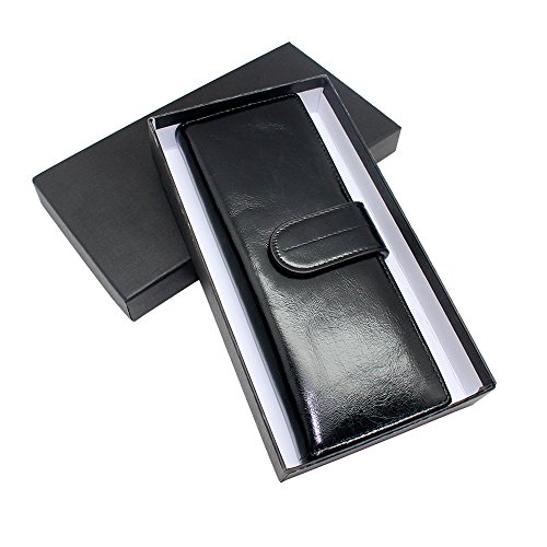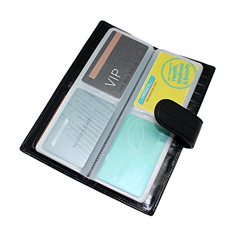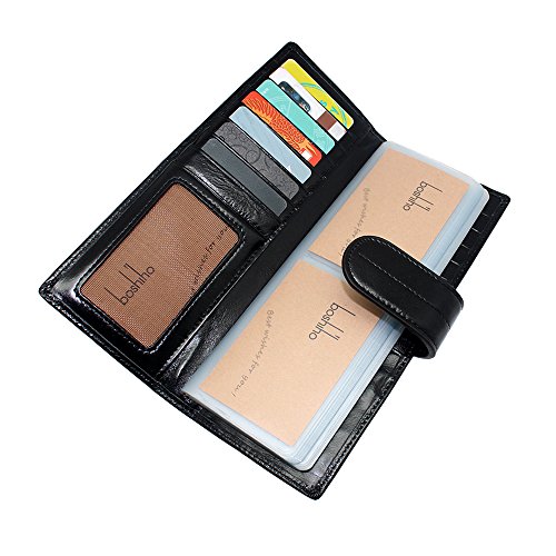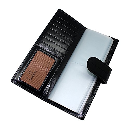 40 see-through card pockets & 16 leather card slots - Provides ample room to store your credit cards, business cards, and more; 2 change pockes and an ID window