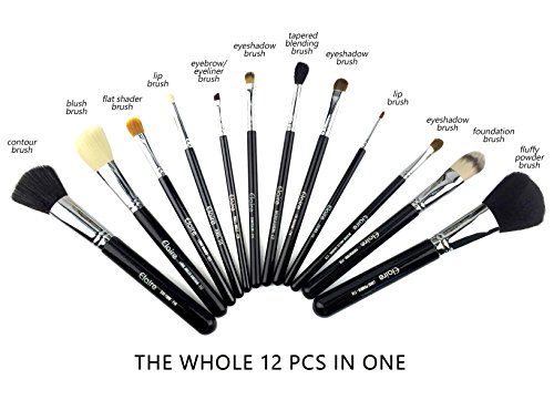 Full 12pcs Set : Consists of a contour brush, a blush brush, a flat shader brush, two lip brushes, eyebrow/eyeliner brush, three eyeshadow brushes, tapered blending brush, foundation brush, and fluffy powder brush with different sizes, lengths, and angles for your various makeup needs.