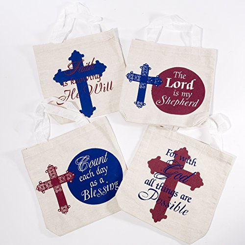 Religious Canvas Tote Bags, 8 x 8-Inch with 5 1/2-Inch, (1 Dozen)