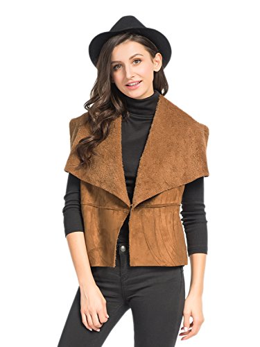 Persun Women's Suedette Open Front Waistcoat Vest Jacket Cardigan