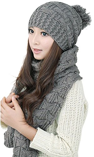 -. Feature : 5 Colors available: White, Black, Pink, Gray, Beige / Material: Acrylic / One Size Fit All / Scarf size: 78L X 9.4W 200 x 24cm (L x W) / Hat size: 15-50 x 23cm (D x H)