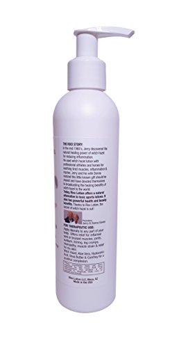 1 Pack of 8 oz bottles with Free Shipping. Inflammation Control lotion - Arthritis Pain Relief Lotion - Helps With Muscle Cramps - Soothes and Moisturizes - Treats Sunburns - Itch and Rashes, including shingles - Contains Witch Hazel - Aloe Vera - Hyaluronic Acid - Hempseed Oil and Essential Oils. The inflammation control quality is derived from the witch hazel as well as the penetration qualities of aloe vera to reach deeply into the muscle or joint. Aloe vera has been used for benefits to the skin including sunburn and anti-aging value. The essential oils provide a mood enhancing quality. For persistent or chronic pain, recommended consistent twice daily use has been noted to speed recovery. Other notable relief has been reported for relief of itching and reduction of swelling. Neuropathy suffers have reported relief from the burning feeling and numbness.Feature