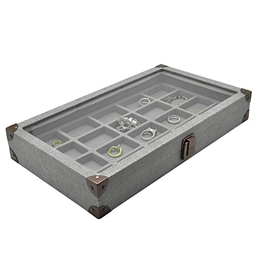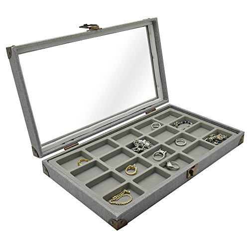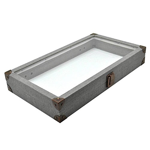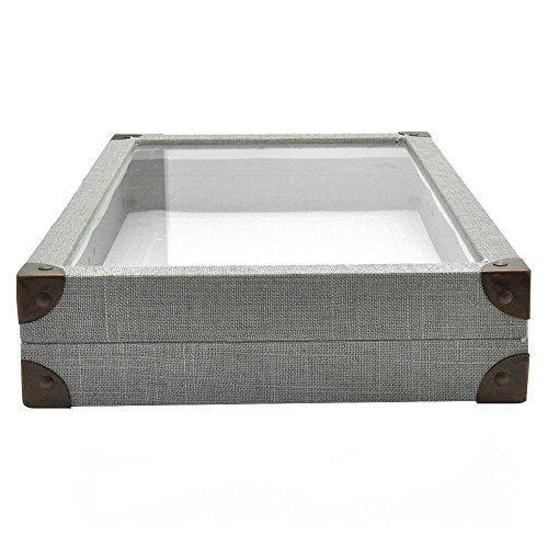 -. Binding : Kitchen -. Brand : Gems on Display -. Color : Grey -. Feature : Product note: This tray will not work inside an aluminum carrying case / Color: Grey / Material: Linen-wrapped case with a glass top / Size: Measures 14 3/4" x 8 1/4" x 2 1/8" -. IsAutographed : 0 -. Label : Gems on Display -. Manufacturer : Gems on Display -. Model : CS-8305N-N21 -. MPN : CS-8305N-N21 -. PackageQuantity : 1 -. PartNumber : CS-8305N-N21 -. ProductGroup : Home -. ProductTypeName : HOME -. Publisher : Gems on Display -. Size : Measures 14 3/4" x 8 1/4" x 2 1/8" -. Studio : Gems on Display -. Title : Grey Linen Jewelry Tray with Glass Lid