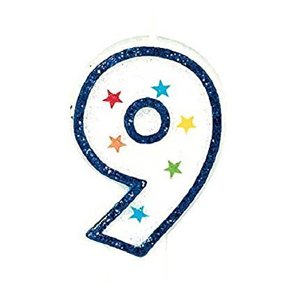 Star Studded Flat Molded Number 9 Celebration Candle, White , 3.5 Wax (2-Pack)