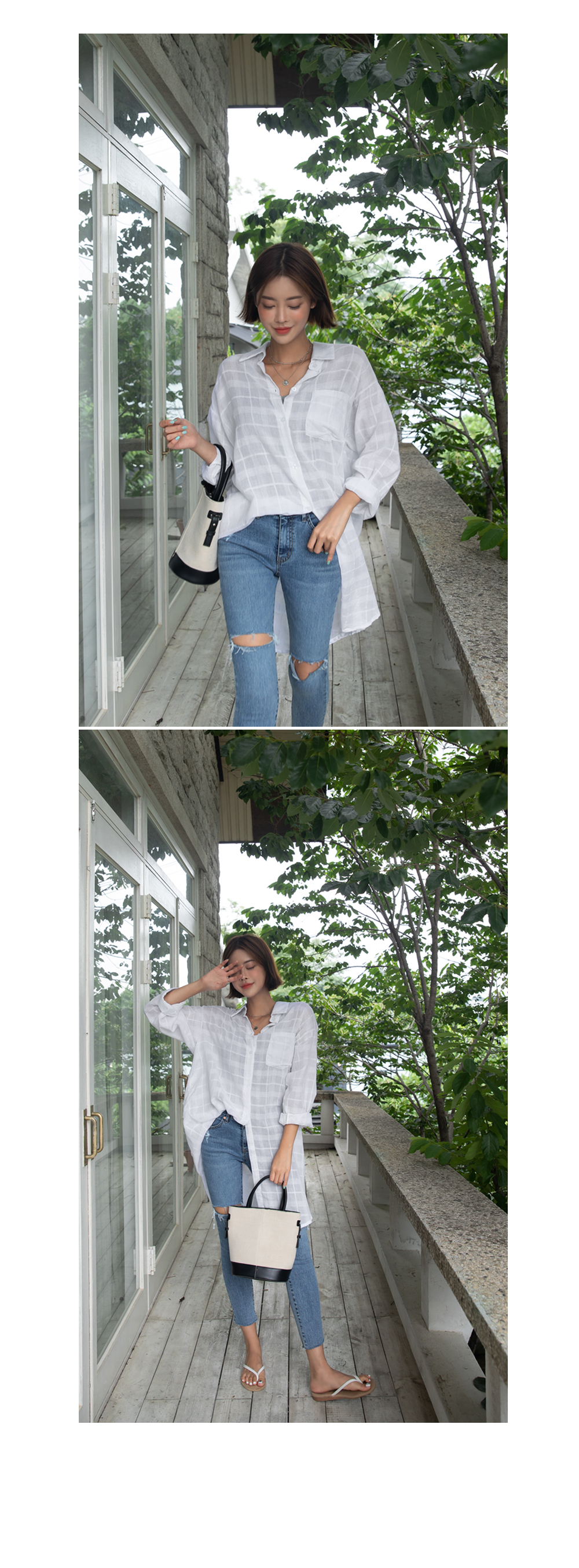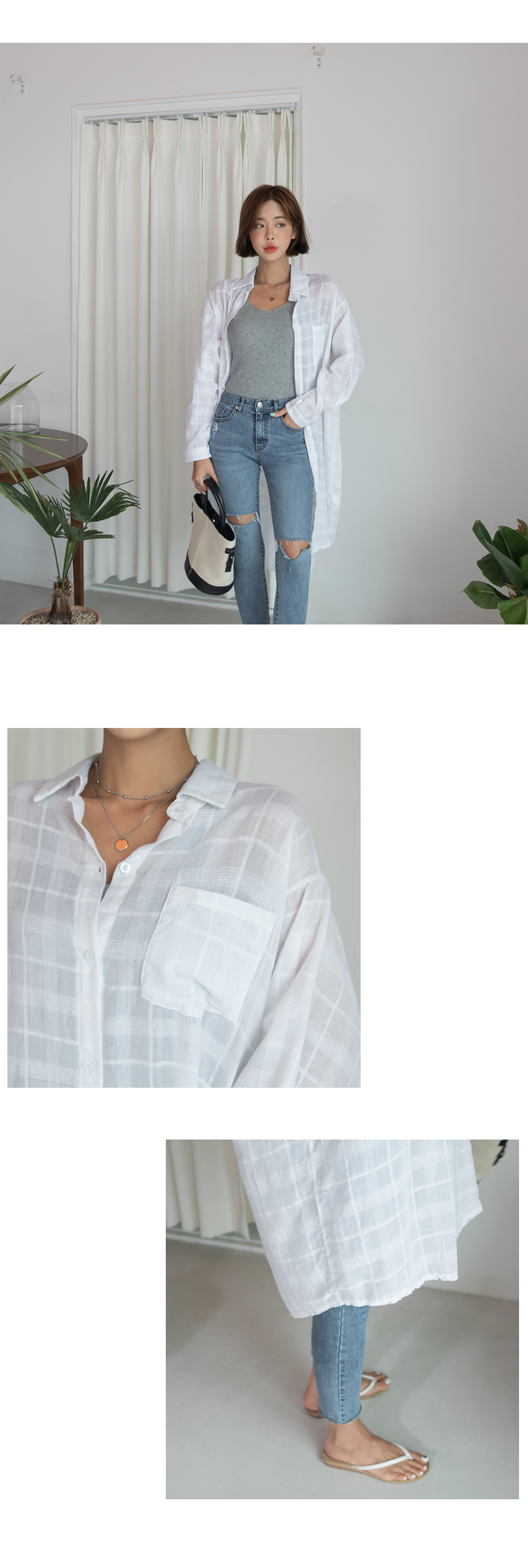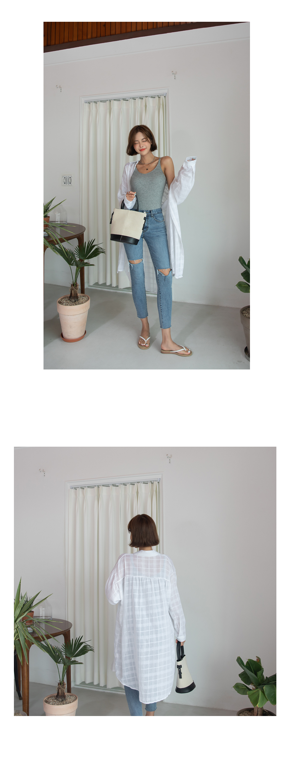 루즈한 핏감의 얇은 소재로 여름까지 쭉~즐길 수 있는 남방이에요^0^