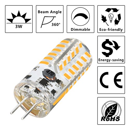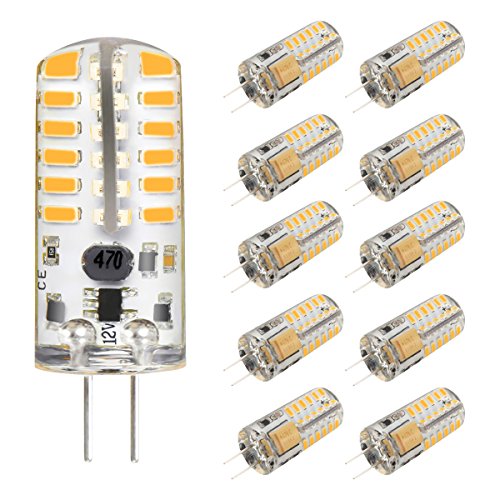 KINGSO G4 LED Bulb 10 Pack 3W Bi-Pin LED Light Bulb 48×3014 SMD 20W Halogen Bulb Equivalent Silicone Coated Shatterproof 220 Lumens 360° Beam Angle AC/DC 12V - Warm White